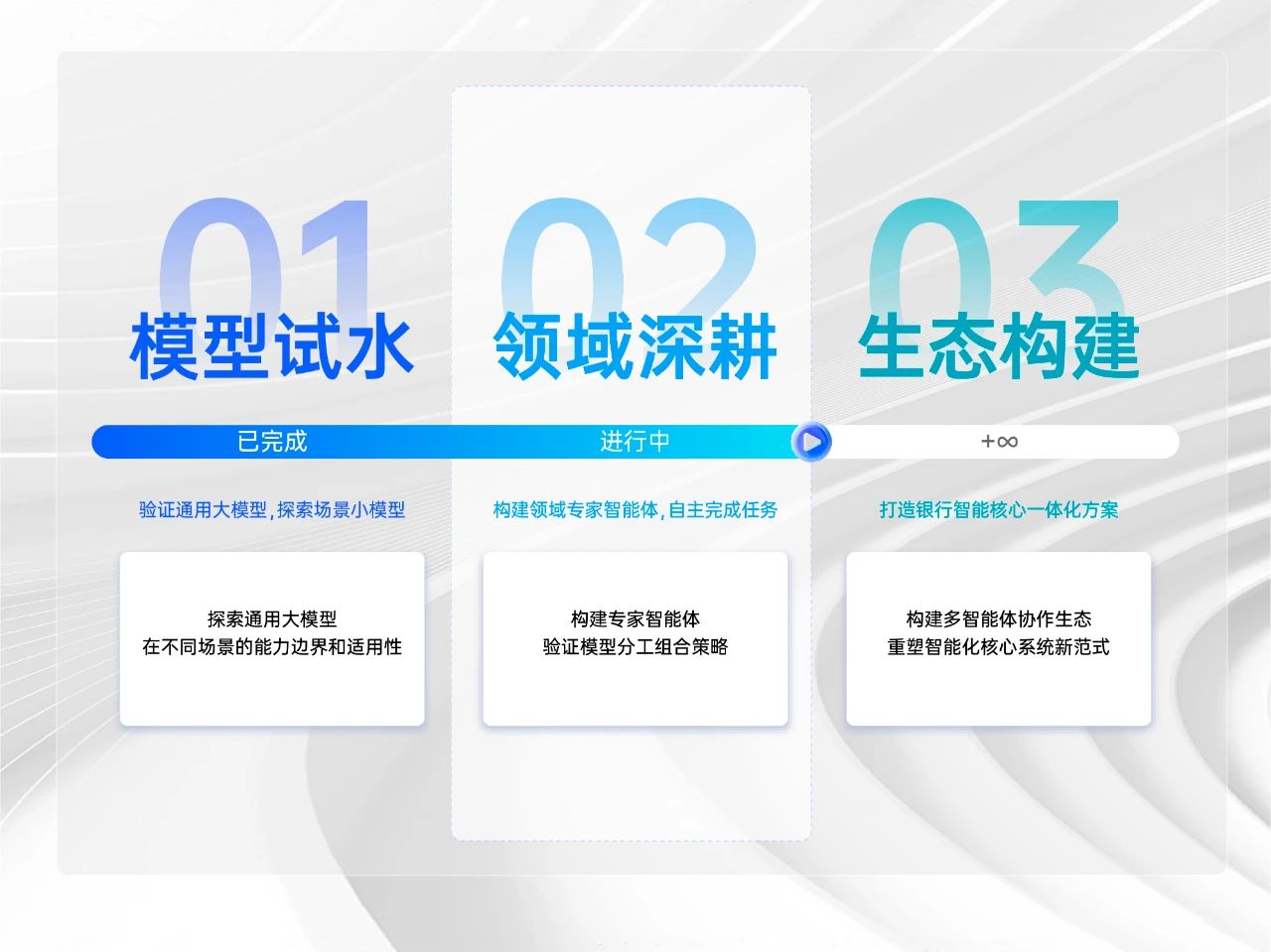 ? 策略:完善“N+M”大模型體系,構(gòu)建全場(chǎng)景多智能體協(xié)作生態(tài),打造銀行智能化核心系統(tǒng)研發(fā)新范式。