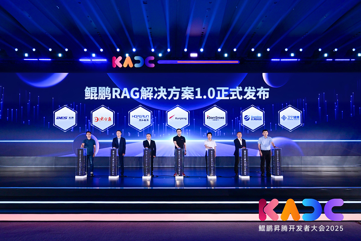 開幕首日,華為鯤鵬攜手長亮科技等6家企業聯合發布“鯤鵬RAG解決方案1.0”。長亮科技總裁助理孫世勝出席聯合發布儀式。