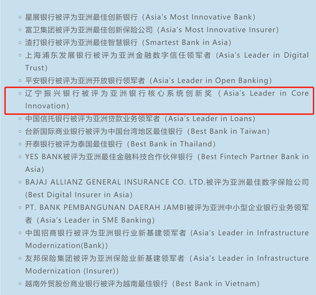 3月26日,IDC于新加坡公布了15家榮膺2021年亞太區金融行業創新大獎的金融機構,由長亮科技中標承建的遼寧振興銀行新核心項目憑借著在“微服務+單元化”創新技術應用方面的突出成績,榮獲“亞洲銀行核心系統創新獎”。