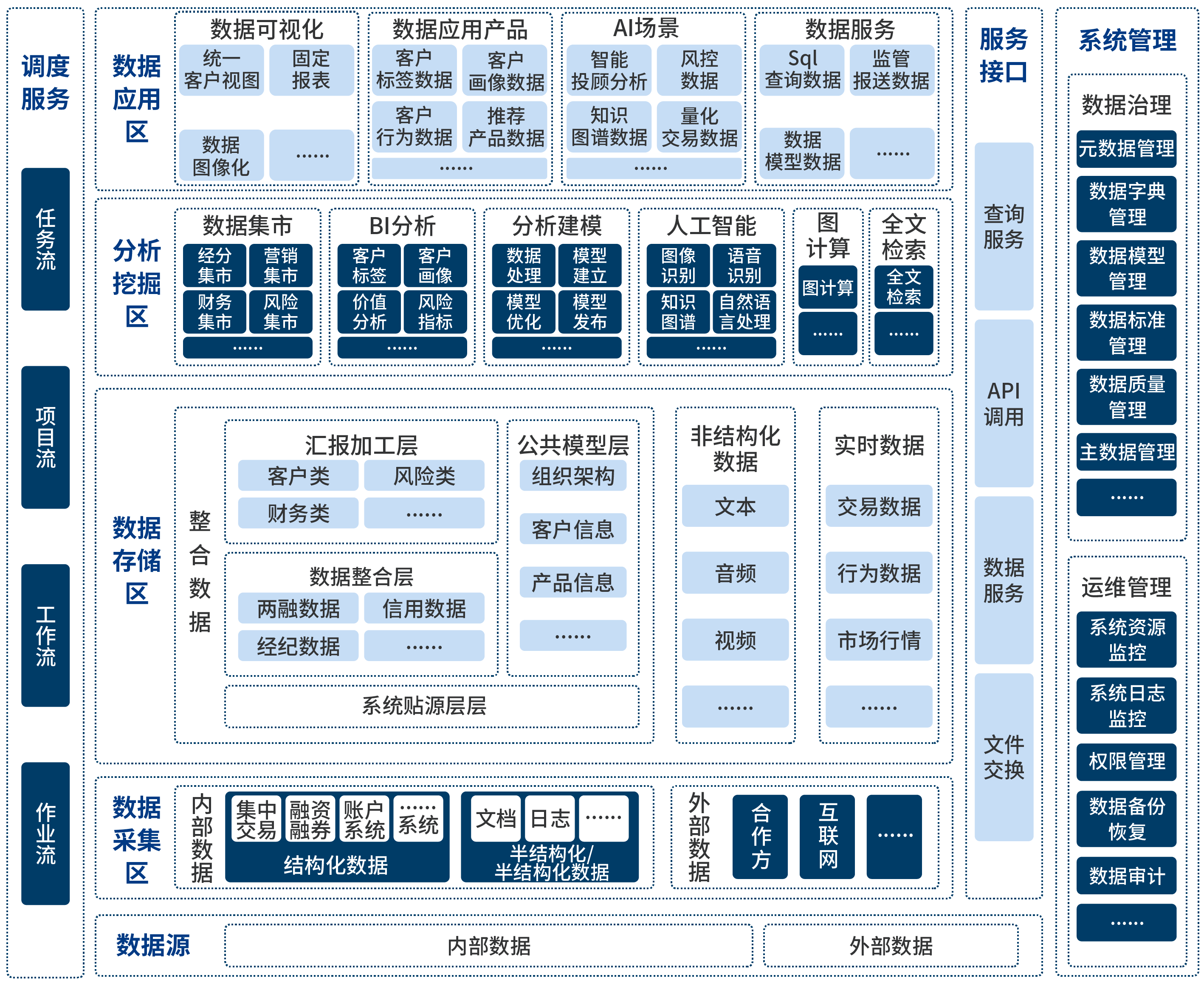 隨著證券行業(yè)大環(huán)境的變化,證券公司為實(shí)現(xiàn)業(yè)務(wù)戰(zhàn)略轉(zhuǎn)型、業(yè)務(wù)變革與創(chuàng)新發(fā)展,對(duì)數(shù)據(jù)的分析、應(yīng)用提出了更高的要求。基于大數(shù)據(jù)平臺(tái),可有效整合企業(yè)內(nèi)外部數(shù)據(jù)信息,構(gòu)建金融科技基礎(chǔ)能力,為證券公司業(yè)務(wù)拓展提供數(shù)據(jù)應(yīng)用、數(shù)據(jù)分析、數(shù)據(jù)洞察決策等敏捷支撐。